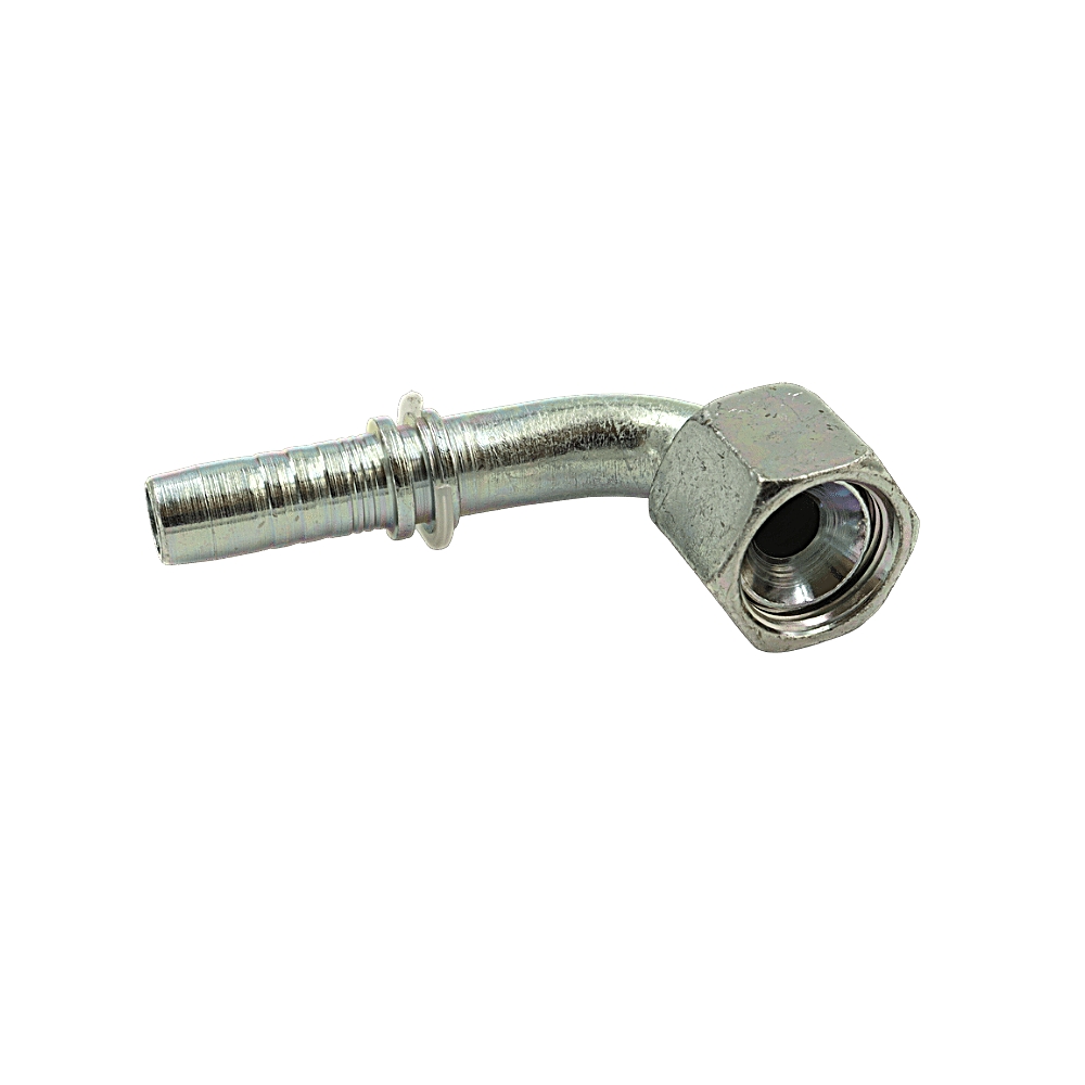 Puristettava 90 asteinen letkuliitin UNF sisäkierteellä.JIC tiivistyspinta. Materiaali edistyksellisellä TOP COAT pinnoitteella päällystetty teräs.