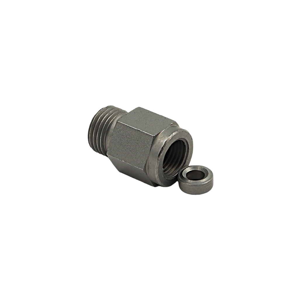 Kevyen sarjan mittariliitin R1/4" sisäkierteellä. Sisältää kartiotiivisteen mittarille. ILMAN MUTTERIA ja LEIKKUURENGASTA.