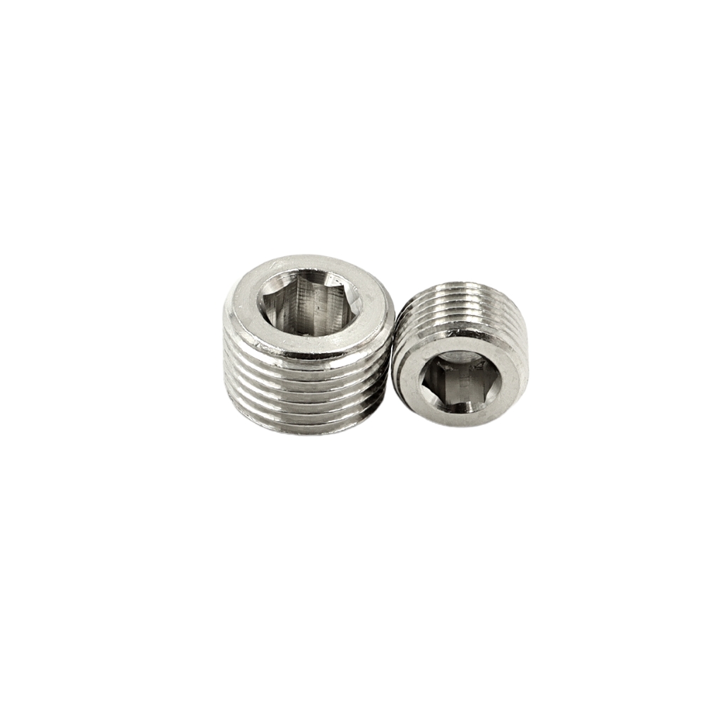 Messinkinen kannaton kuusiokolotuplla RK-ulkokierteellä.